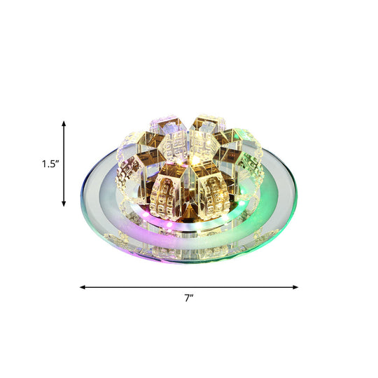 Modern LED Flush Mount Lighting - Chrome Floral Ceiling Light with Crystal Shade