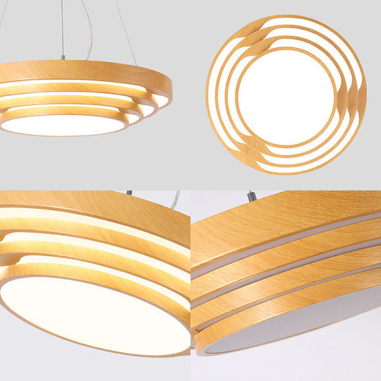 Modern Led Pendant Light: Stylish Multi-Layer Wood Design 1-Light Office Ceiling Fixture In