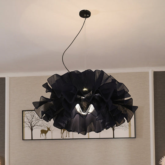 Modern White/Navy Blue Hand Woven Layered Pendant Light With Fabric Shade White