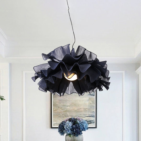 This modern stylish pendant light fixture is perfect for adding a unique, contemporary touch to any room. It measures 20 to 24 inches in size, and has a fixture width of 23.5 inches and a fixture height of 12 inches. The color of this light is a beautiful navy white and it has a single head. The light has a feature of being able to be hung and it has a modern style. This light is made of fabric quality, making it highly durable. It is designed with a shade, giving you a soft diffused light for your room. The voltage range of this fixture is from 220V-240V to 110V-120V. This makes it suitable for both high and low-voltage lighting systems. It has the ability to work with a variety of bulb types, such as LED, incandescent, and fluorescent, using the standard E26/E27 bulb base. This pendant light is perfect for adding sophistication and elegance to any interior space.
