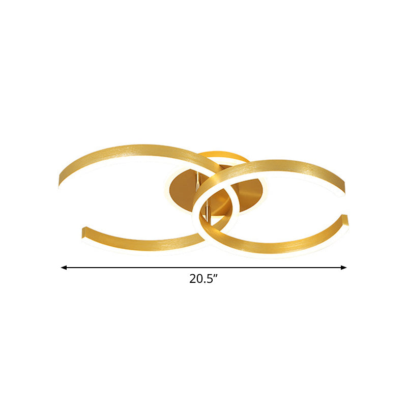 Stylish Dual C Hotel Ceiling Light - Modern 20.5/23 Inch Wide LED Flush Mount in Gold, Warm/White Light