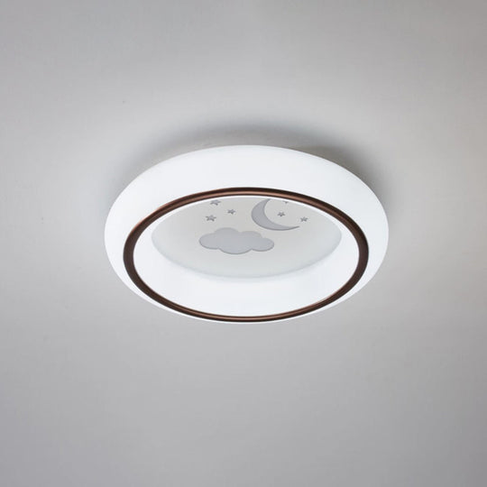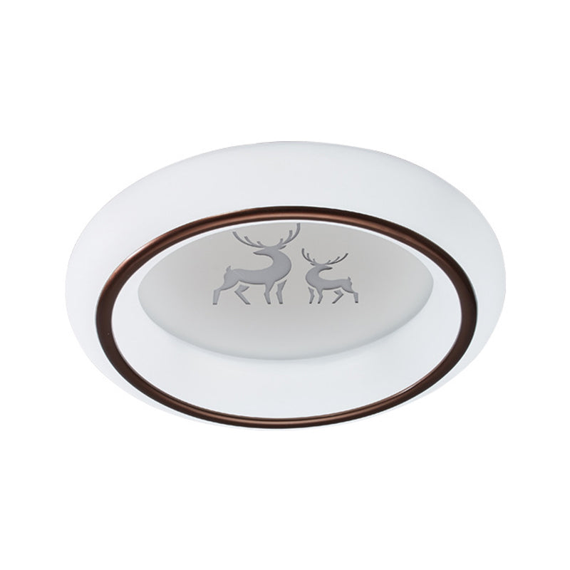Contemporary LED Ceiling Lamp in White with Moon, Deer, and Hot Air Balloon Flush Light