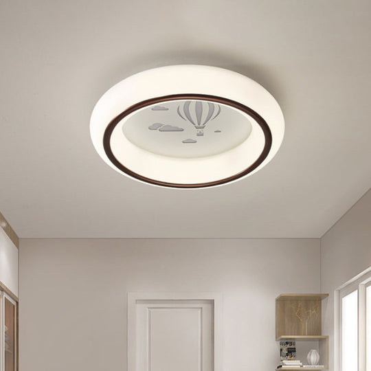 Contemporary Led Ceiling Lamp In White With Moon Deer And Hot Air Balloon Flush Light