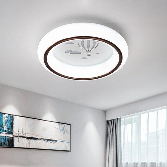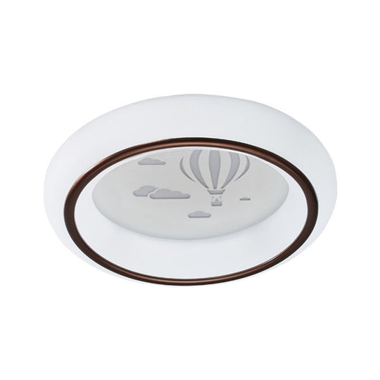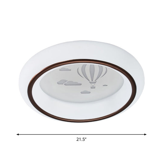 Contemporary Led Ceiling Lamp In White With Moon Deer And Hot Air Balloon Flush Light /