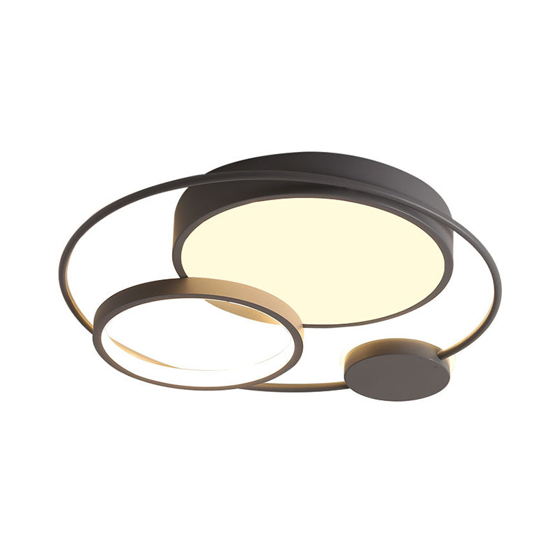 This is a futuristic, minimalist LED ceiling light. It comes in three different sizes- 16, 19, and 23.5 inches wide. The light fixture is made of acrylic and metal, and it has a black or grey finish. It's perfect for a bedroom or any other space that needs a little brightening up. This light is easy to install- just plug it in and it's good to go! The light has a color temperature of white and a voltage of 110-120V or 220-240V. It also has a SMD bulb base.
