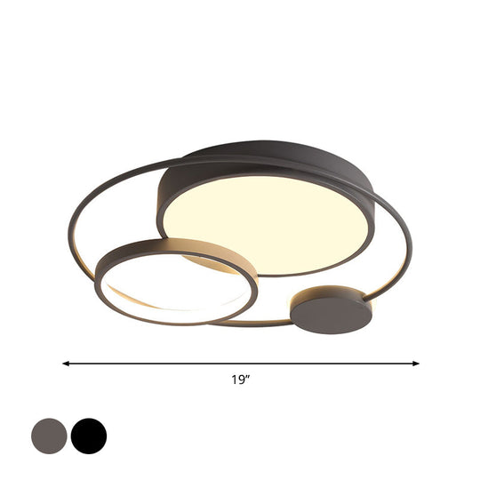 Nordic Circle Ceiling Lighting: Metallic LED Flush Mount Light (16"/19"/23.5") - Black/Grey for Bedroom