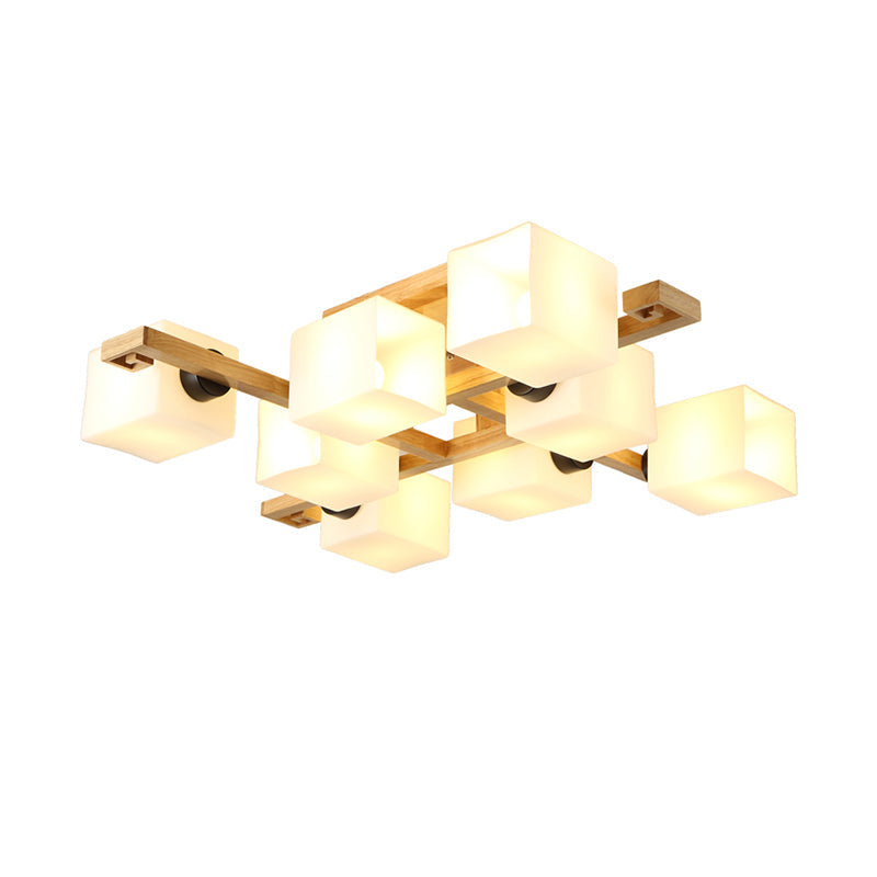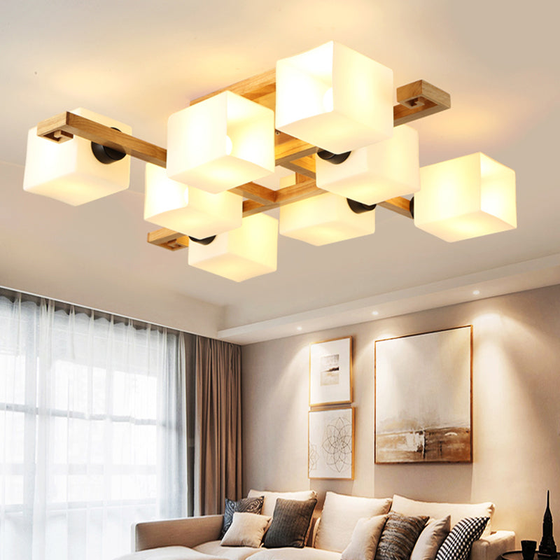 Nordic Style Rectangular Flush Mount Light With White Glass Semi Chandelier For Living Room 9 /