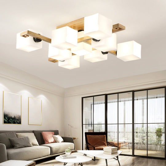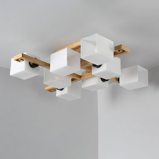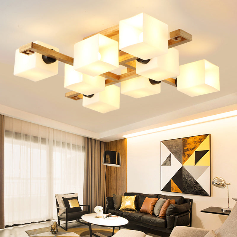 Nordic Style Rectangular Flush Mount Light With White Glass Semi Chandelier For Living Room 8 /