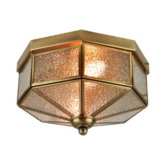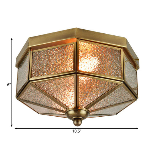 Traditional Textured Glass Flush Mount Ceiling Chandelier - Octagonal Design, 9.5"/10.5" Width, 3-Bulb Brass Fixture