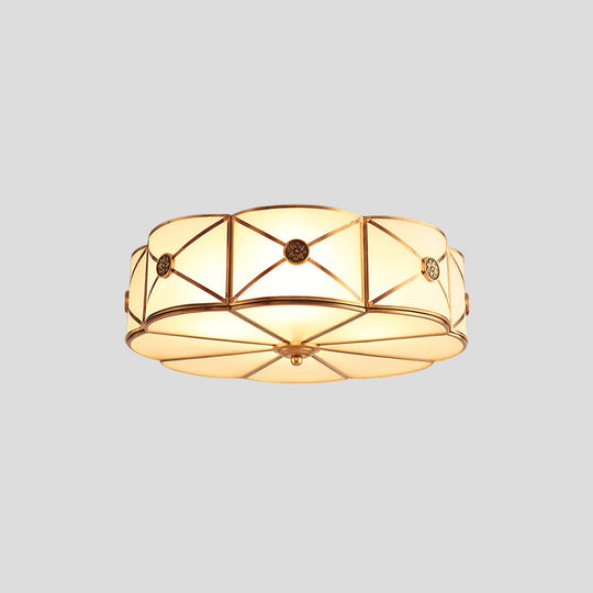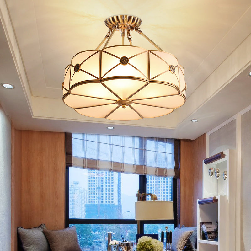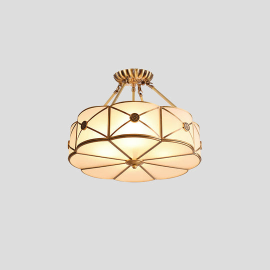 Vintage Opal Glass Scalloped Edge Semi Flush Chandelier - Gold Finish 4 / Flushmount