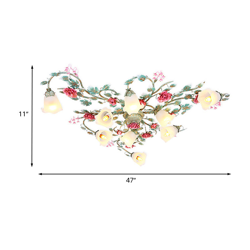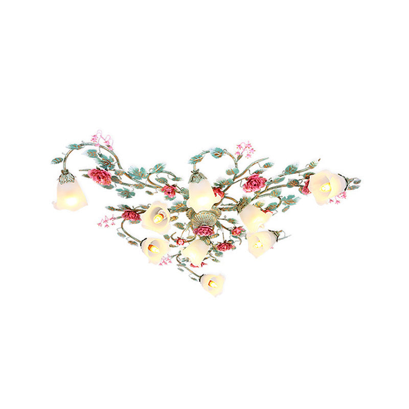 Opal Glass Sputnik Ceiling Lamp - Korean Garden Style - 9-Light Semi Flush Mount in Blue/Green