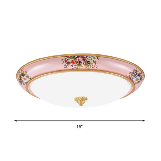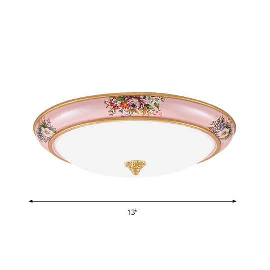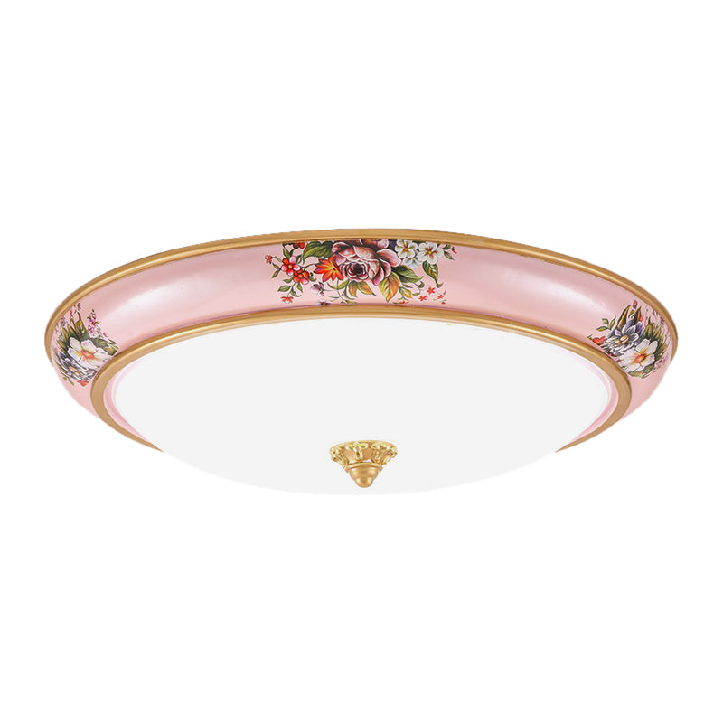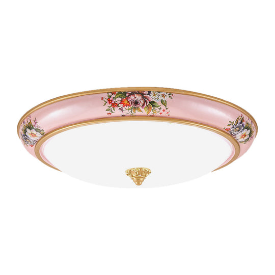 Pink Led Farmhouse Flush Ceiling Light With White Glass Bowl Shade - Warm/White Option For Bedroom