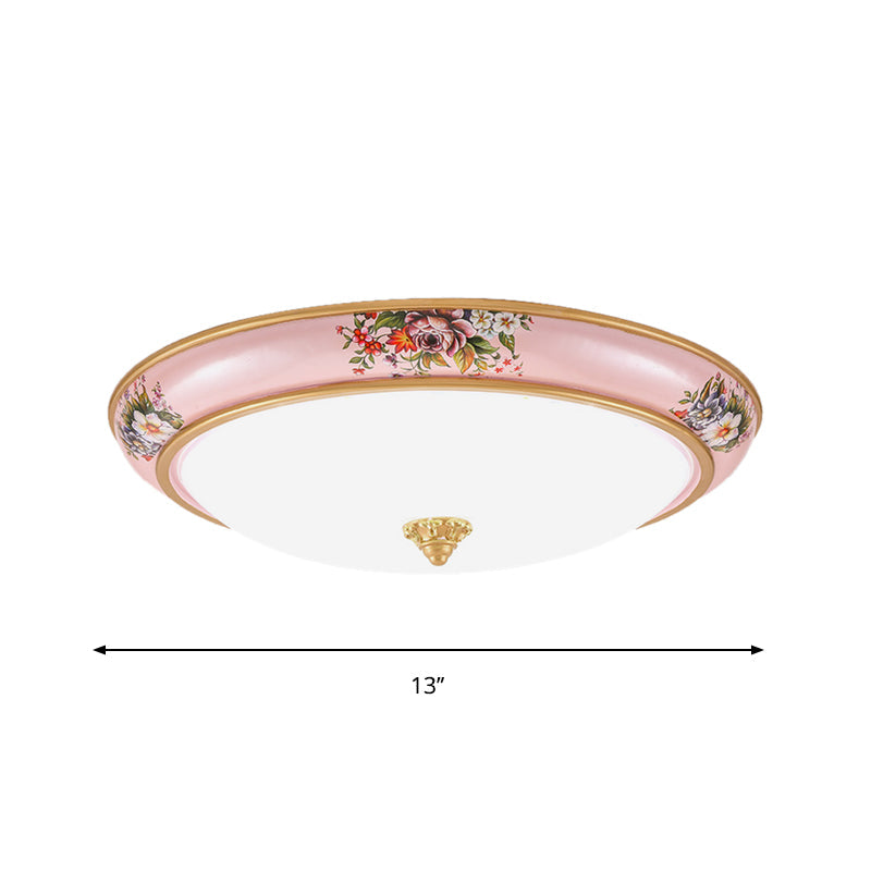 Pink LED Farmhouse Flush Ceiling Light with White Glass Bowl Shade - Warm/White Light Option for Bedroom - 13"/16"/19.5" Width
