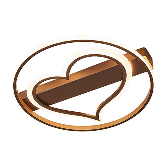 Ring Ceiling Lamp with Loving Heart Design and Acrylic Finish - Coffee/White LED Flushmount Lighting in Warm/White Light