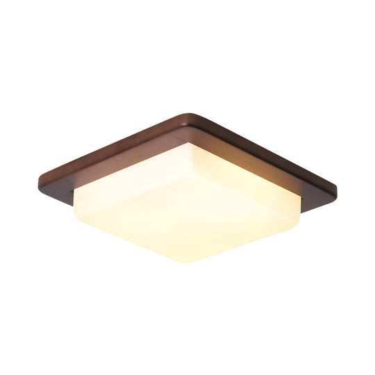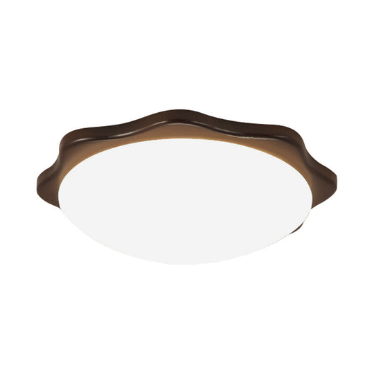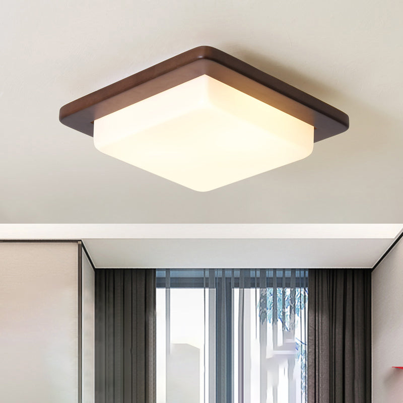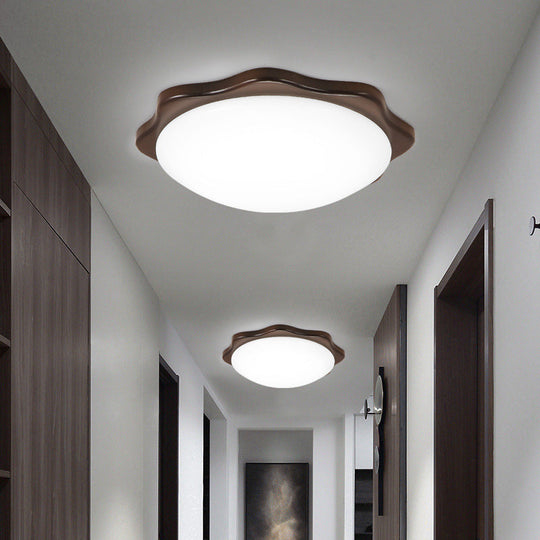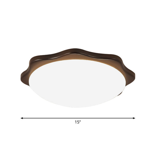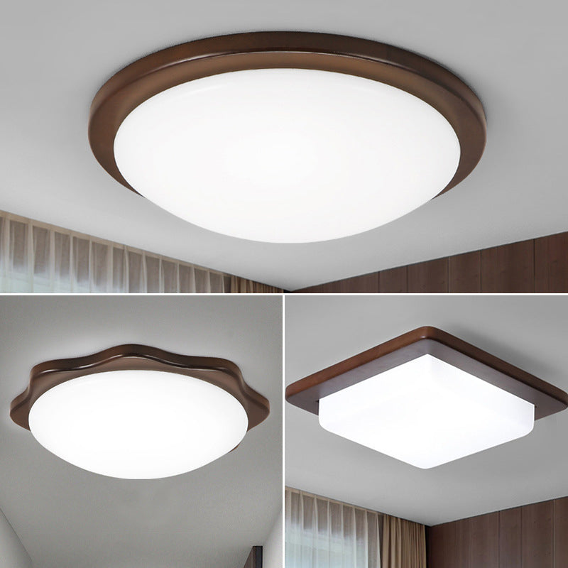Simple Wood Flush Mount Ceiling Light with LED, Round/Square/Flower Design, 14"/15"/18" Wide, Acrylic Shade, Brown