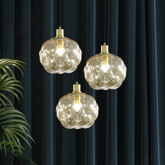 Swelling Globe Pendant Light Fixture With Smoke Grey/Amber Glass - Creative And Minimal Bedside