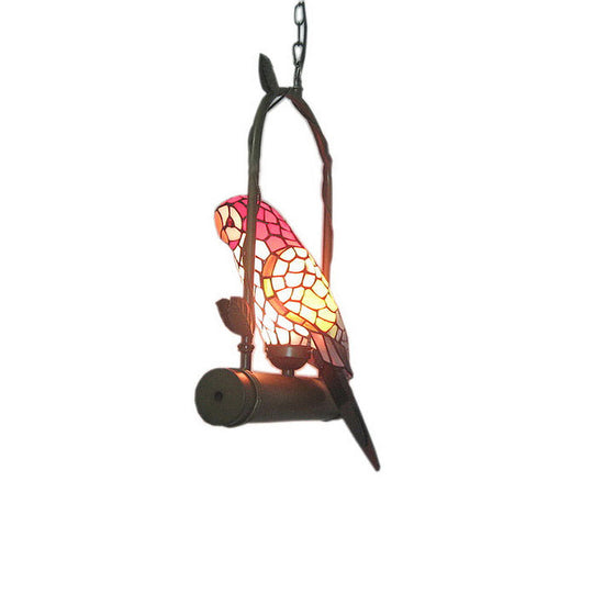Vintage Parrot Stained Glass Pendant Light For Living Room - Single Chandelier Red