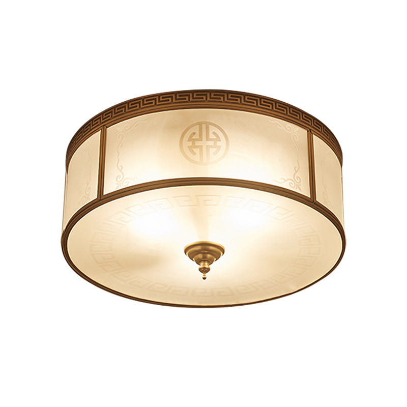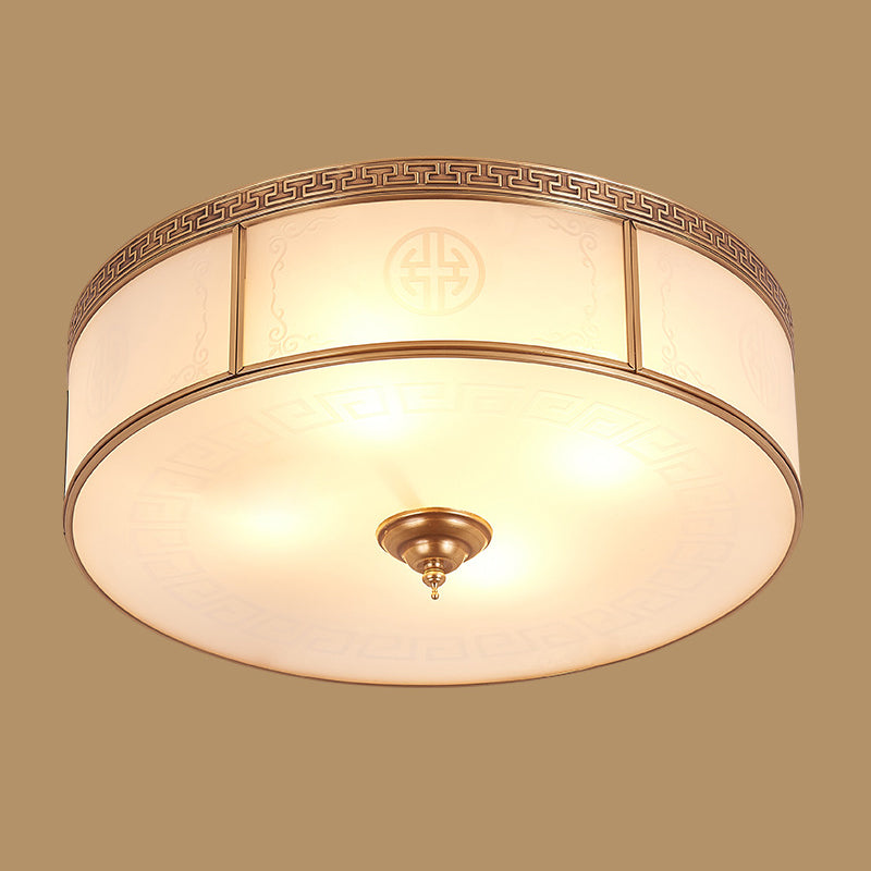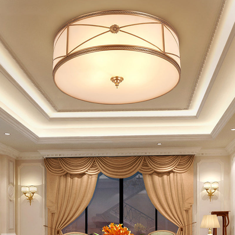 Opal Glass Flush Mount Ceiling Light With Classic Brass Finish