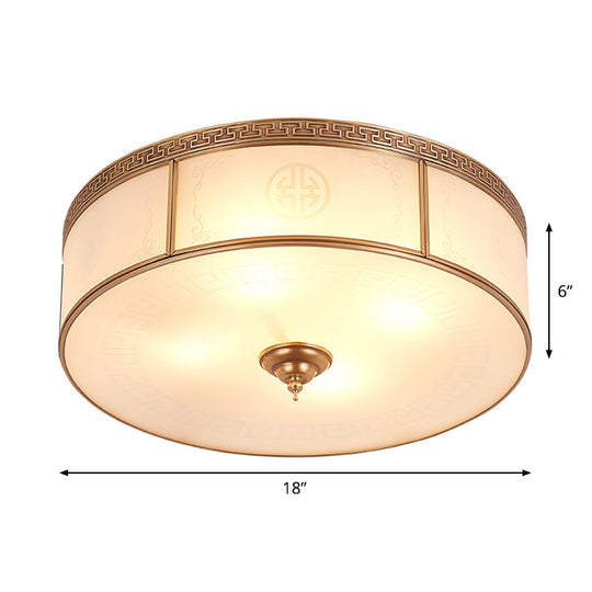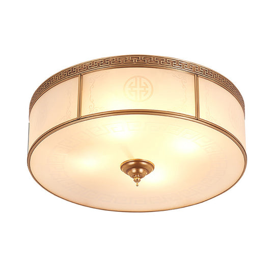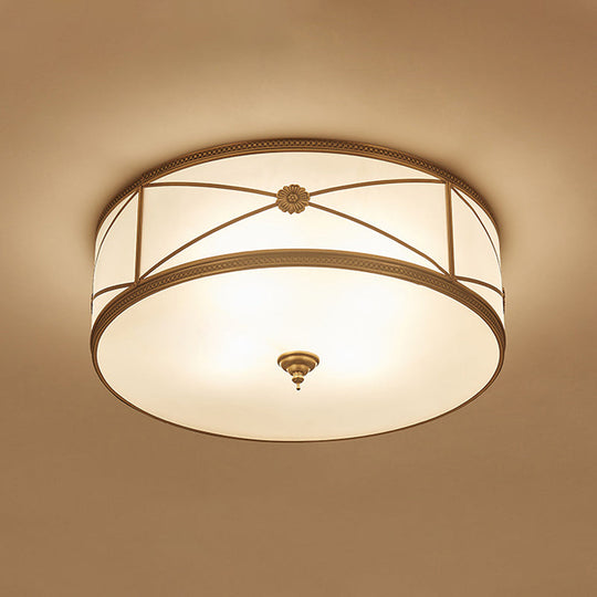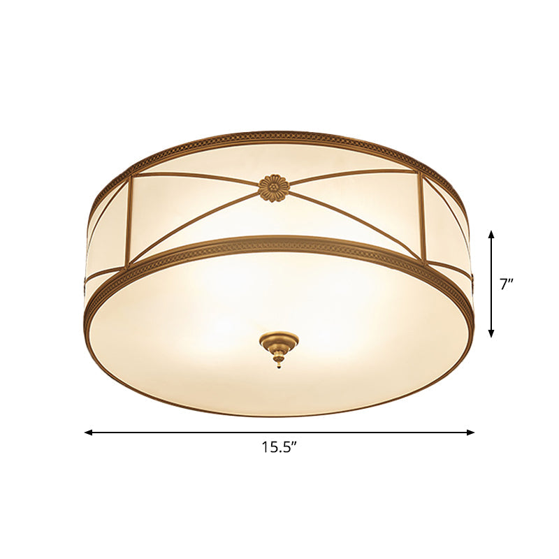 Opal Glass Flush Mount Ceiling Light with Classic Brass Finish
