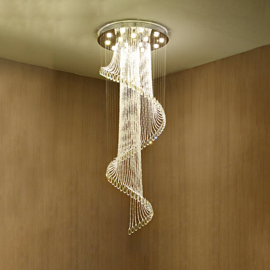 Spiral Waterfall Stairway Crystal Ball Suspension Lamp - Contemporary Design, 5-Bulb Clear Crystals
