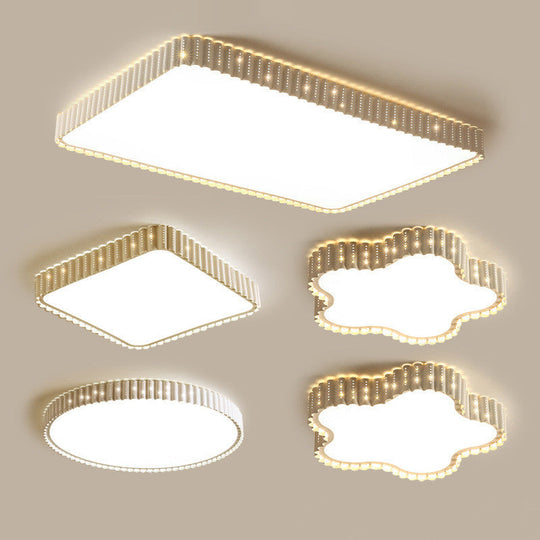 Modern Iron Gold Led Flushmount Ceiling Lamp With Circle Cutouts - Square/Flower/Rectangle Flush