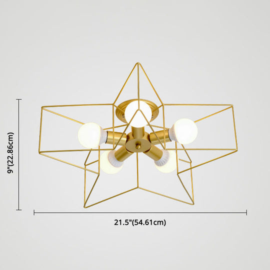 Semi Flush Industrial Metal Chandelier For Bedroom - Stylish Ceiling Mount Lighting Gold / 21.5
