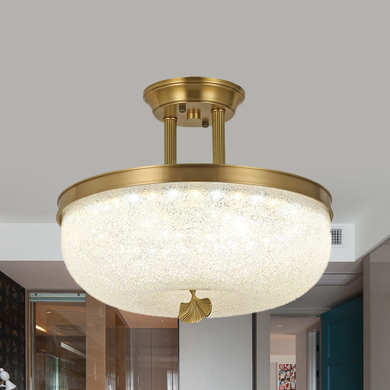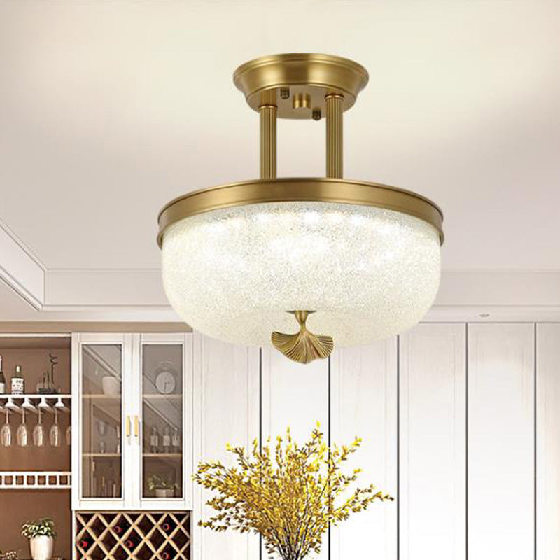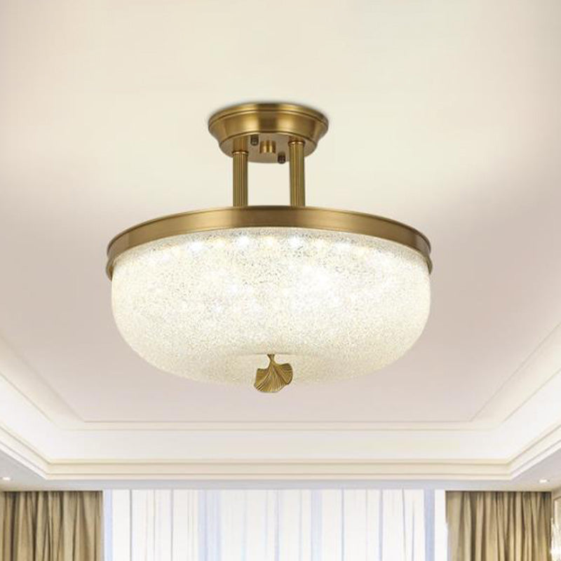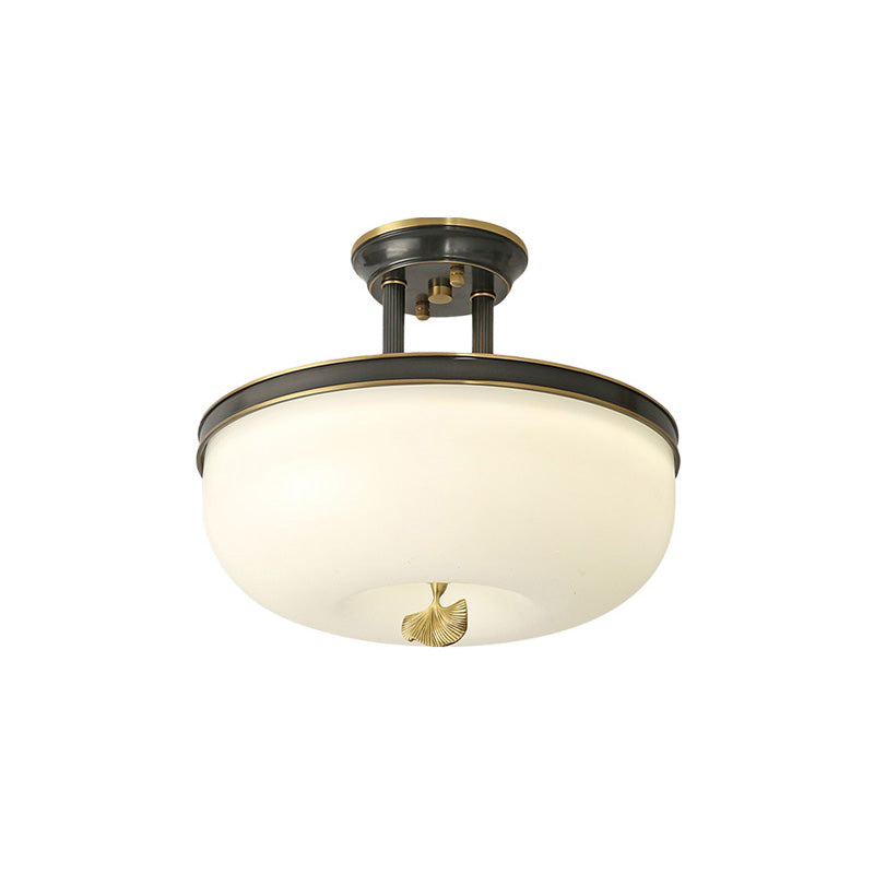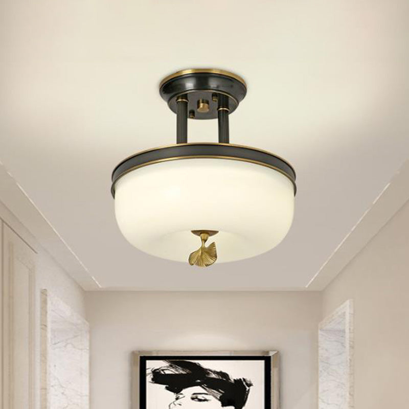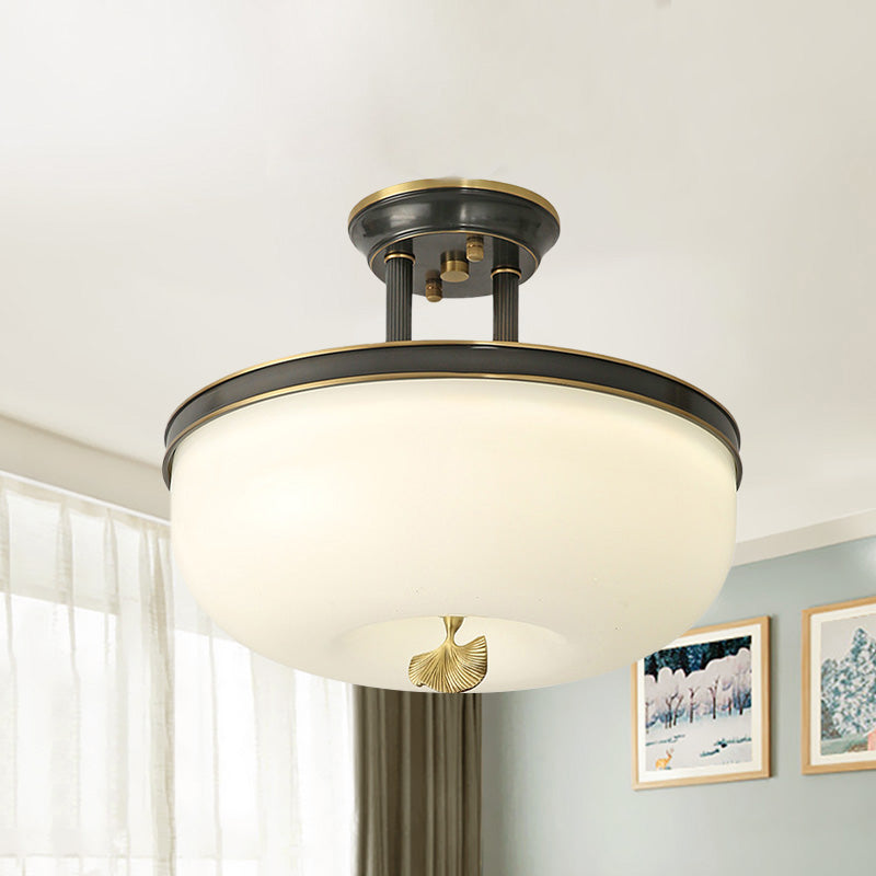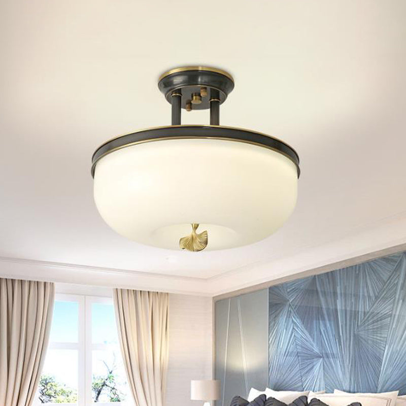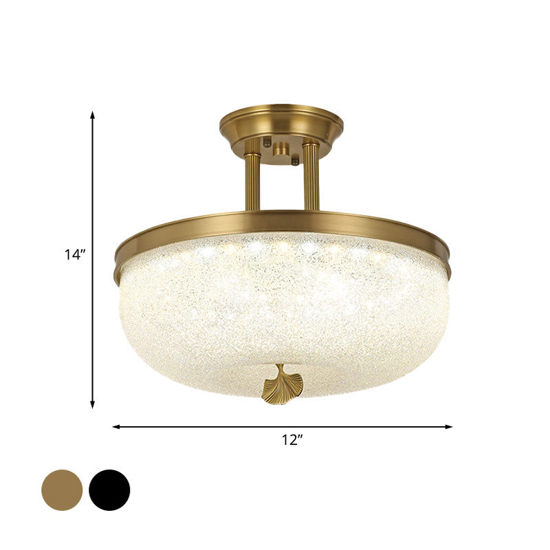 Traditionalist Bowl Semi Flush Mount Led Ceiling Light Fixture Frosted Glass In Black/Gold 12/16