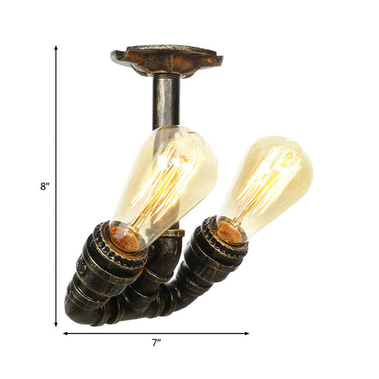 Antique Brass/Aged Silver/Antique Bronze Semi Flush Industrial Ceiling Light with 2 Tubing Indoor Lights