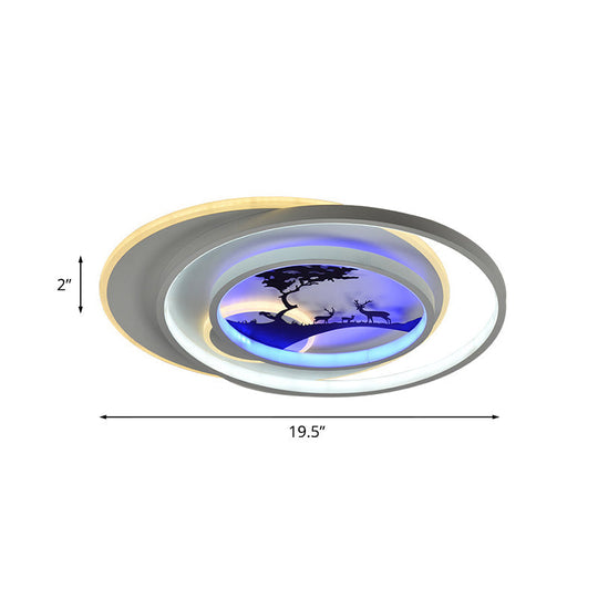 Modern White Flush Light Fixture: Led Acrylic Flushmount Lamp With Elegant Patterns - Flower Deer