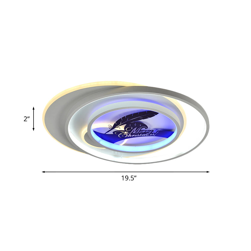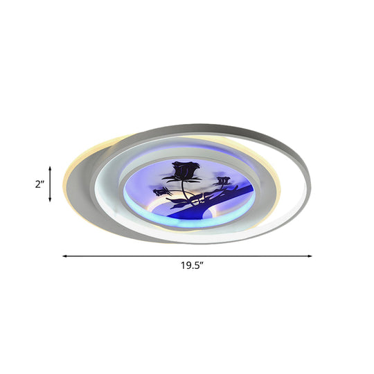 Modern White Flush Light Fixture: LED Acrylic Flushmount Lamp with Elegant Patterns - Flower, Deer, Feather