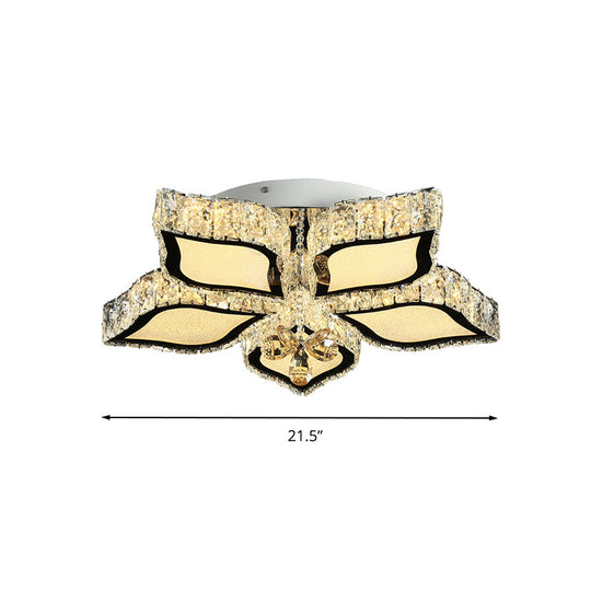 Modern Crystal Flower Led Ceiling Light Fixture For Bedroom - 3 Color Light/Remote Control Dimming