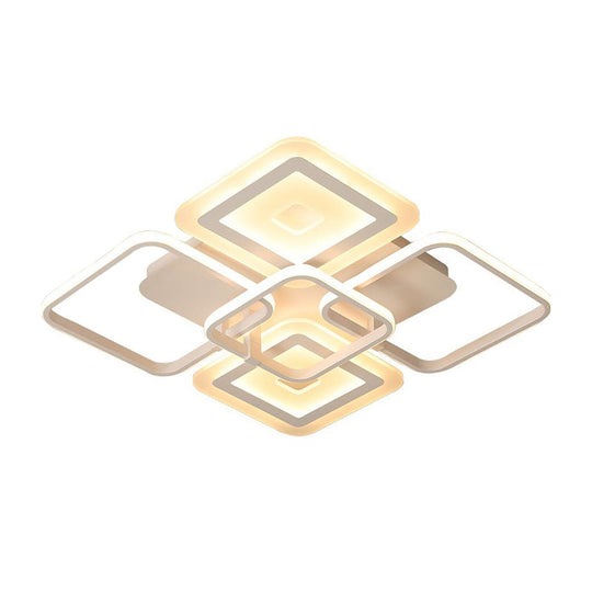 Minimalistic White Square Semi Flush Mount Ceiling Fixture With 5 Acrylic Heads - Warm/White Light