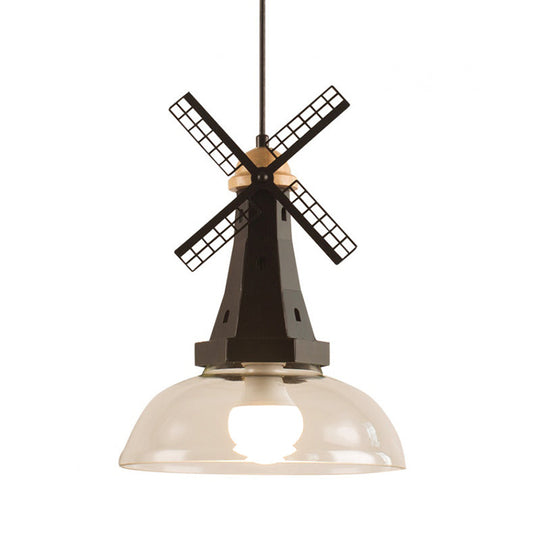 Designer Iron Hanging Lamp With Clear Glass Shade - Windmill Ceiling Lighting 1 Head White/Black