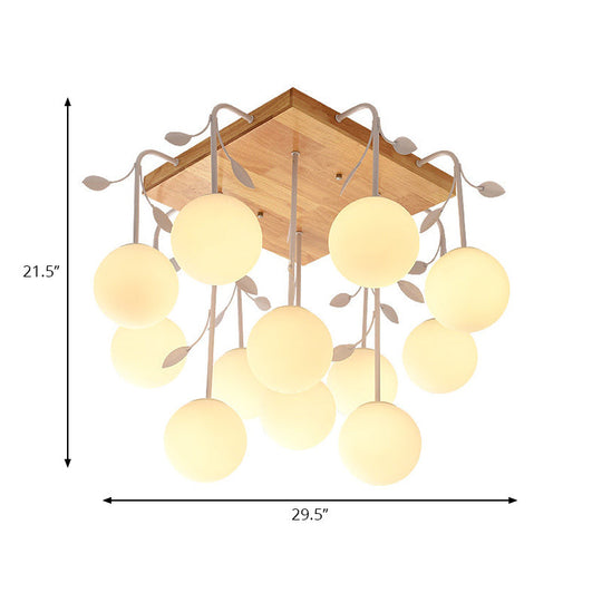 Art Deco Beige Wood Balloon Flush Mount Ceiling Light for Living Room