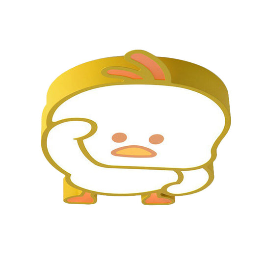 Yellow Duck Led Flush Mount Ceiling Light For Nursery - Cartoon Metallic Design / Third Gear