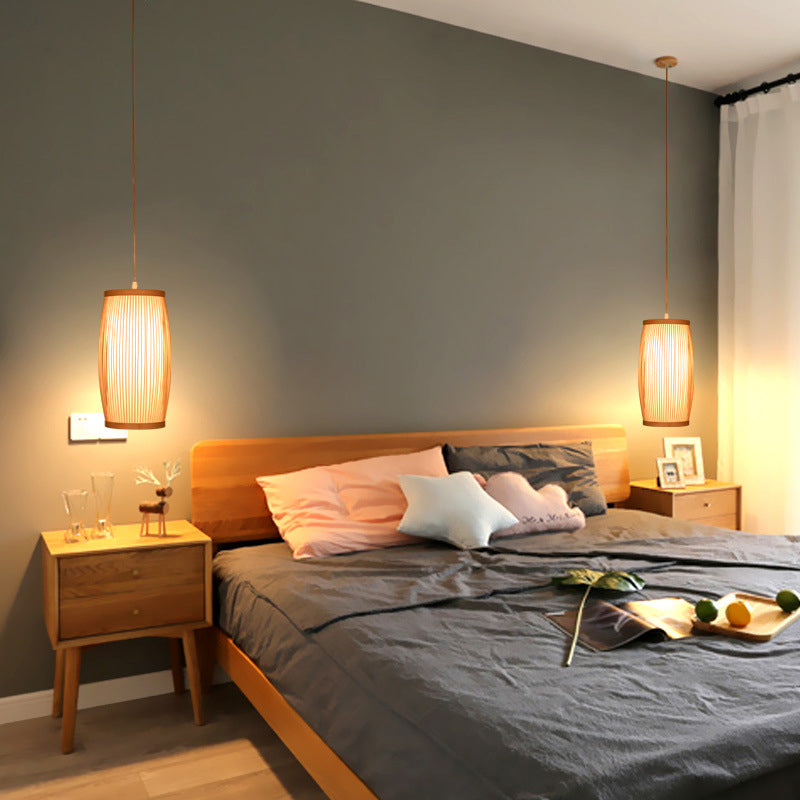 Contemporary Bamboo Pendant Light - Handcrafted Single-Bulb Wood Suspension Fixture