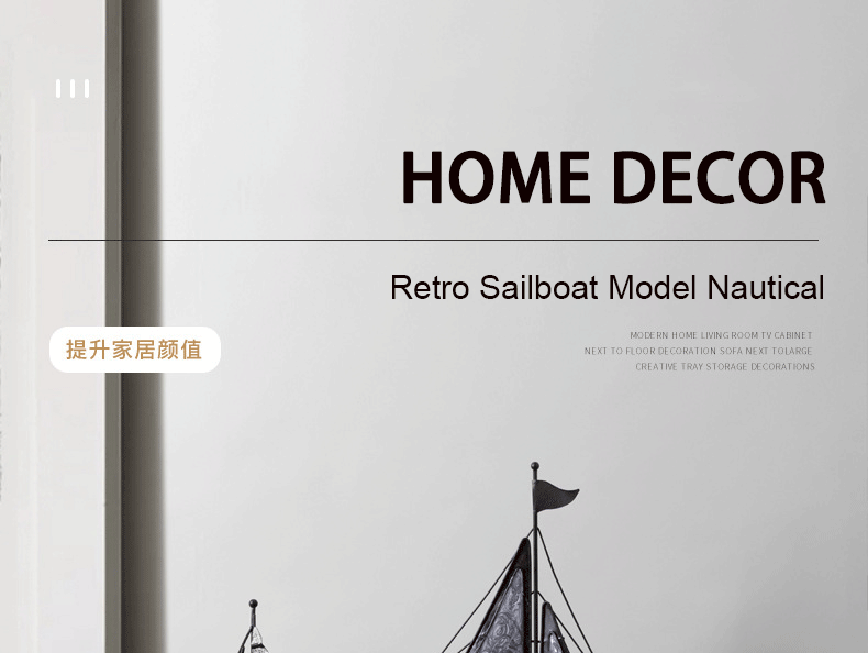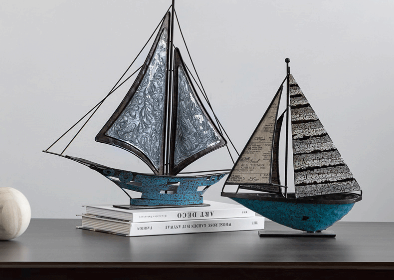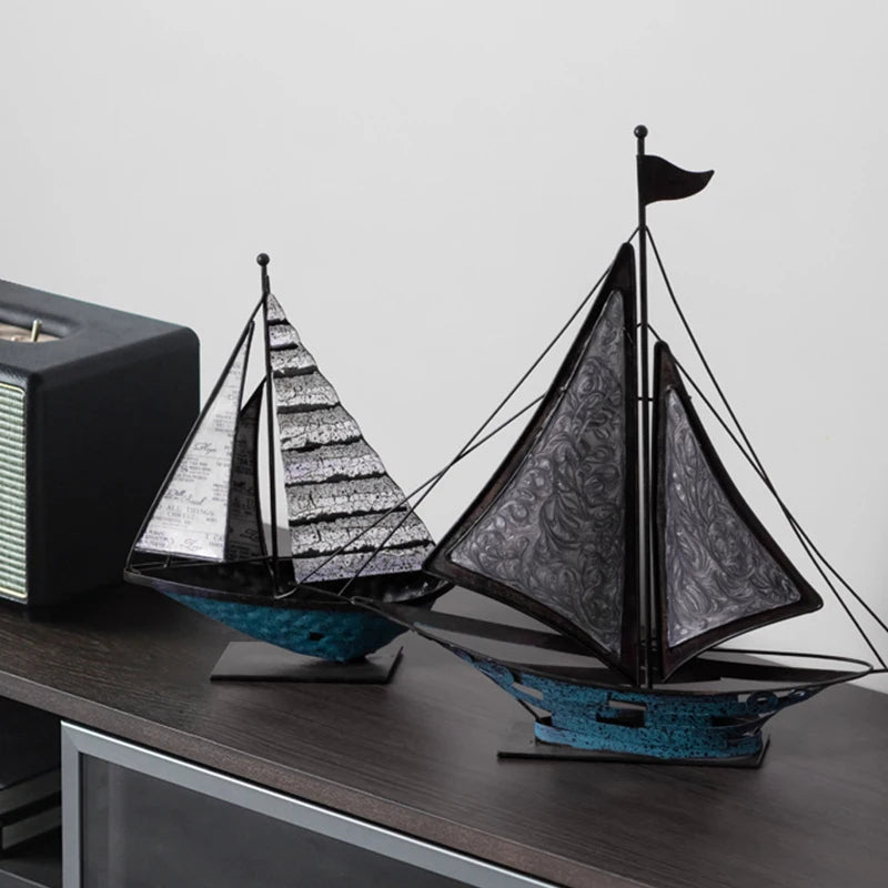 Retro Sailboat Model Nautical Home Decor Nordic Metal Sailboat Figurines Decorations for Beach Theme Room Office Bedroom Decors