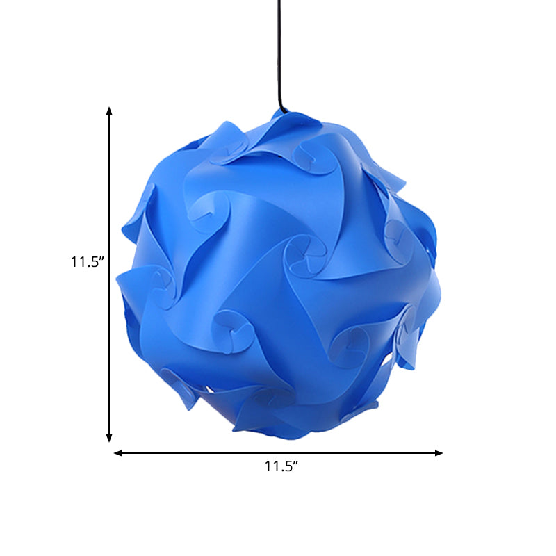 This product is a Black/Red/Blue DIY Hanging Ceiling Light. It is made of plastic and is simple in design. The light is suitable for a study room. It uses 1 light and has a voltage of 220V-240V 110V-120V. The light type is LED/Incandescent/Fluorescent. The product dimensions are: 10 to 14 Inch (length) x 12" 11.5" (fixture width) x 71" 39" (chain/cord length). The product is contemporary in style and is a plastic material.