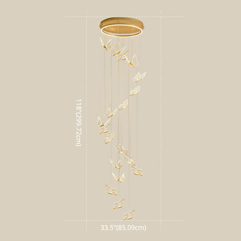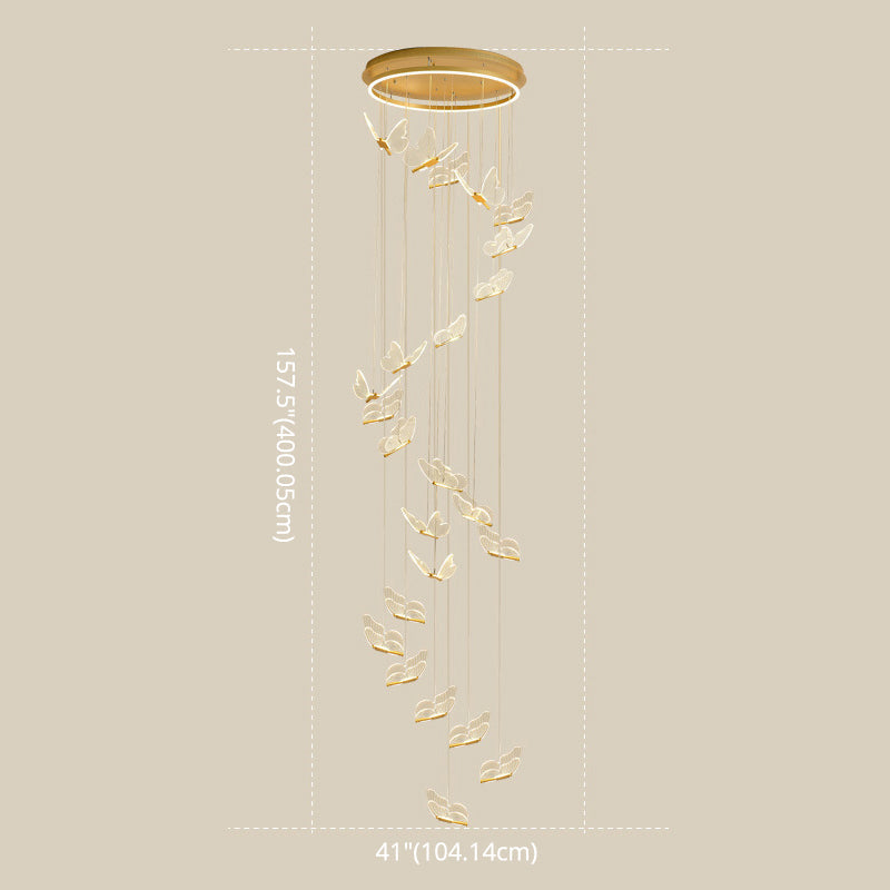 Butterfly Spiral Stairs Ceiling Lighting Acrylic Modern LED Multi-Light Pendant in Gold