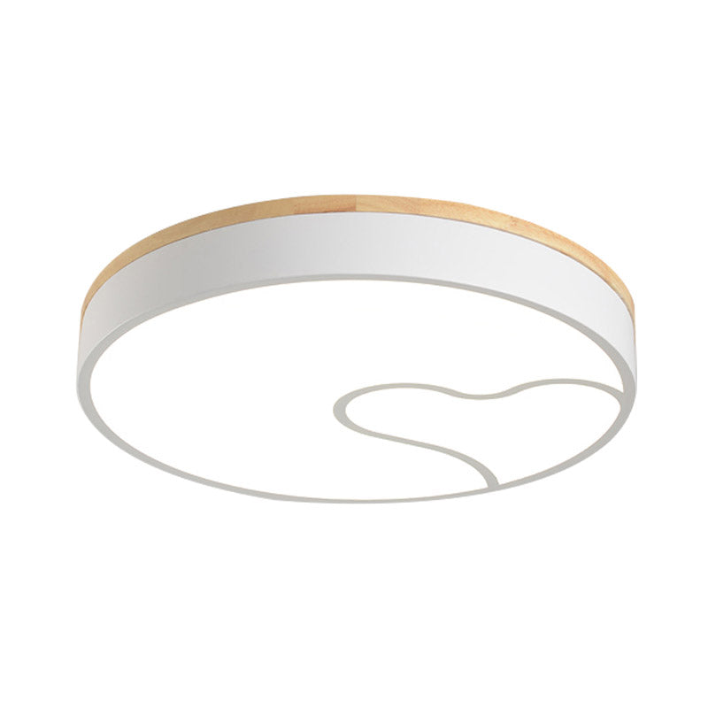 Green/White/Grey Macaron Ceiling LED Light with Wave Pattern and Wood Accent