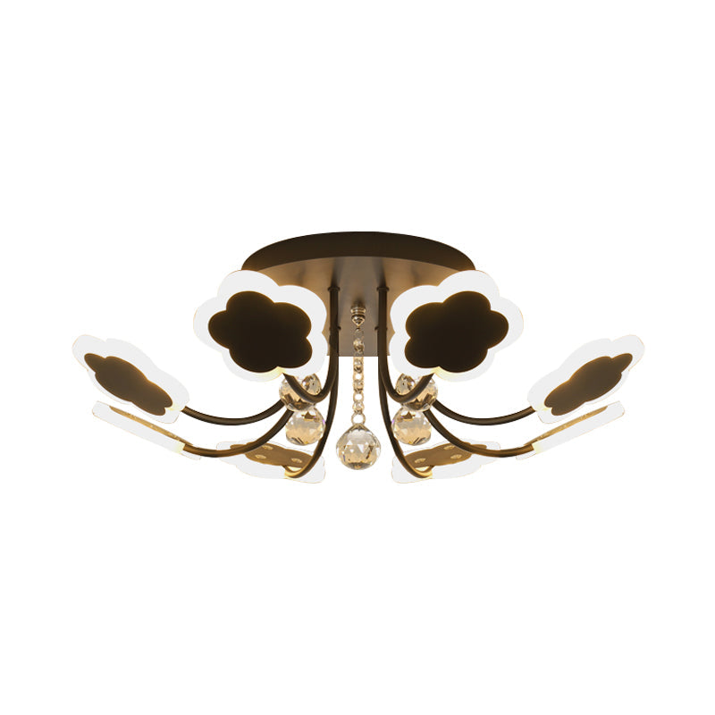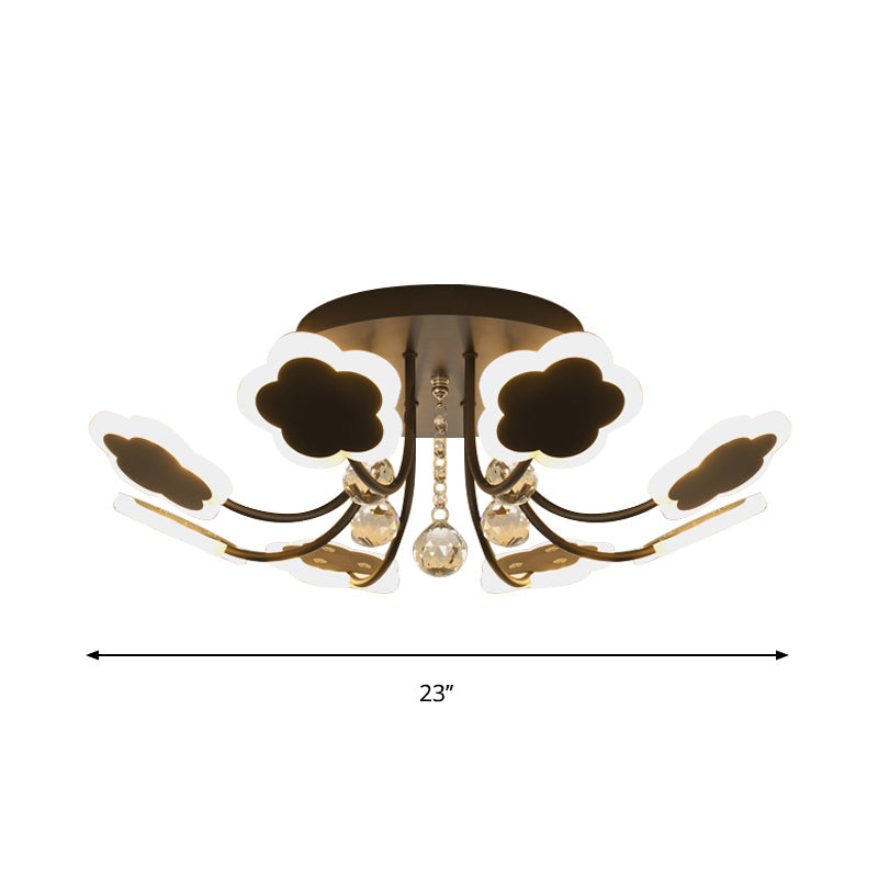 Semi-Mount Petal-Shaped Acrylic LED Ceiling Lamp with Crystal Draping - Black/White, 23"/27" Width, Warm/White Light