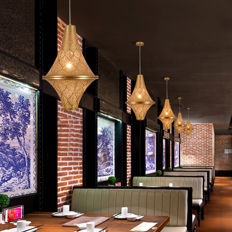 Flying Saucer Ceiling Light - Arab 14"/21.5" H - Metal Pendant Lighting Fixture in Brass