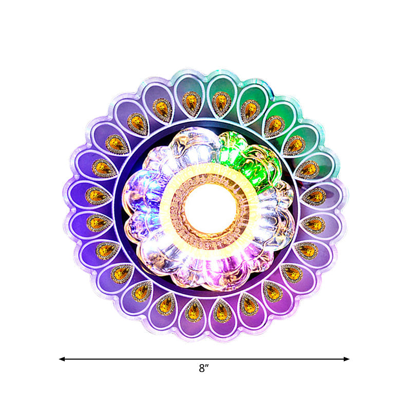 Crystal LED Flushmount Ceiling Light with Peacock Tail Edge - Elegant & Simplistic