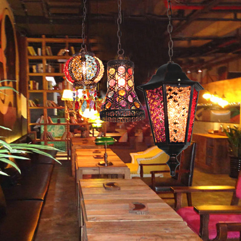 Modern Black Turkish Stained Glass Hanging Light for Dining Room - Flared/Lantern/Tapered Style - 1-Light Pendulum Design