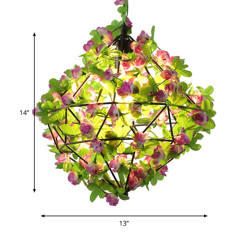 Geometric Wire Cage Pendant Lamp for Retro Restaurant Plant Decor in Black