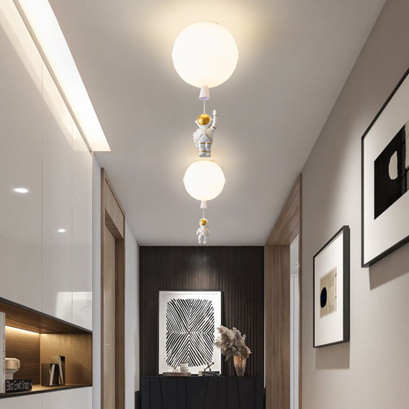 Kids Astronaut And Balloon Ceiling Light White 1-Bulb Flush Mount With Acrylic Shade / 8 Standing