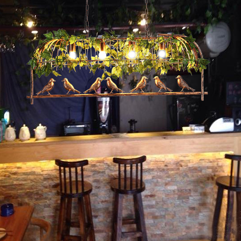 Overall, this "Bronze Birdcage Island Light Fixture Country Iron 4-Bulb Bar Suspension Light" with bird and faux ivy is perfect for adding a modern, warm, and nature-inspired feel to any space. With its multi-purpose size and lamp base, this versatile product is perfect for any room requiring accent or overhead lighting.