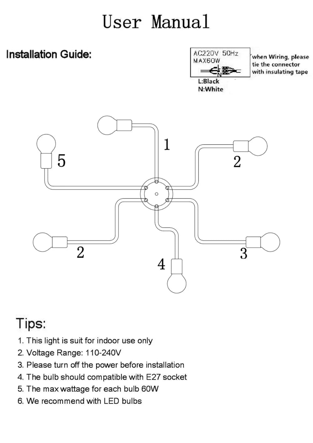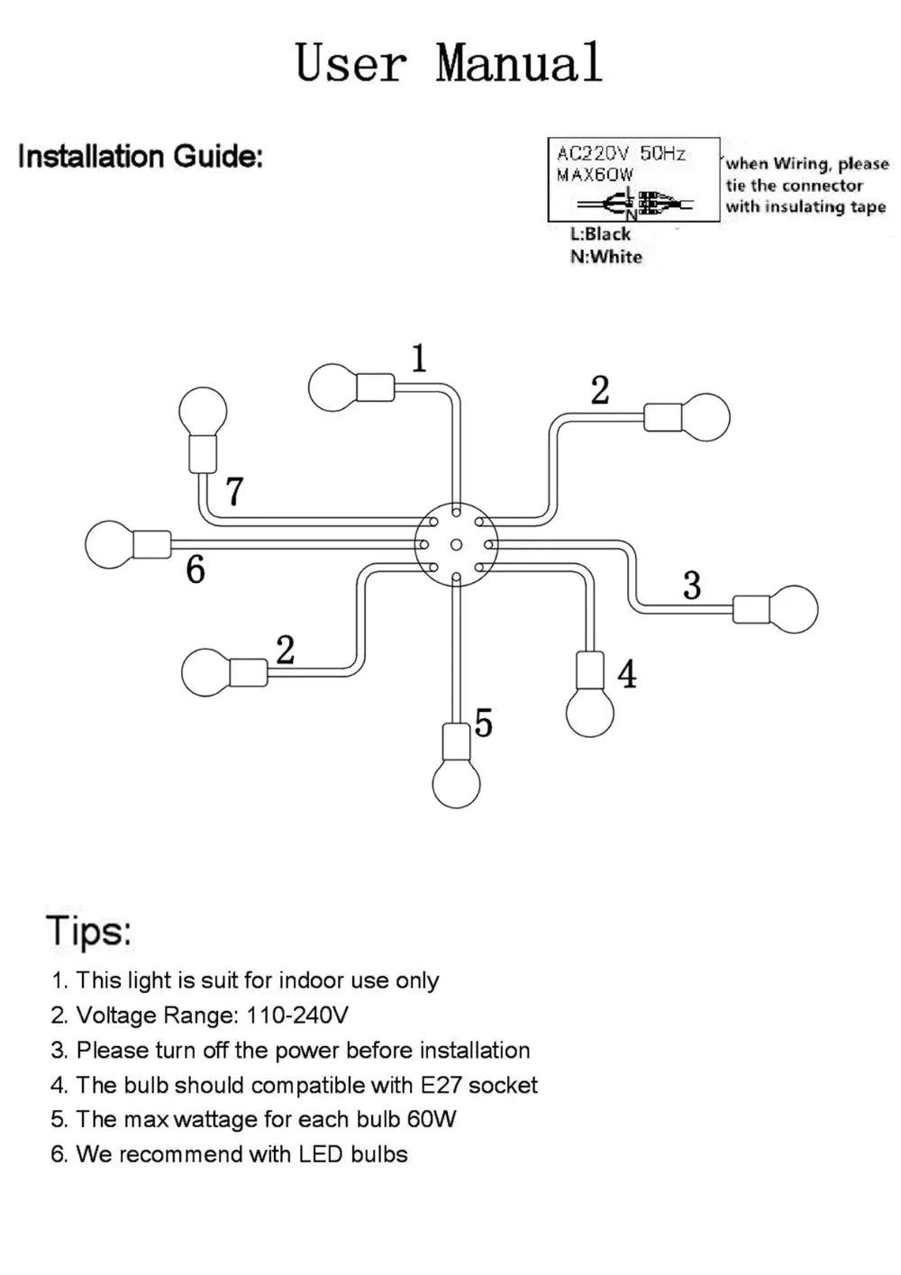 Loft Nordic Pipe Wrought Iron Ceiling Light 4/6/8 Heads Lamp 6 Heads