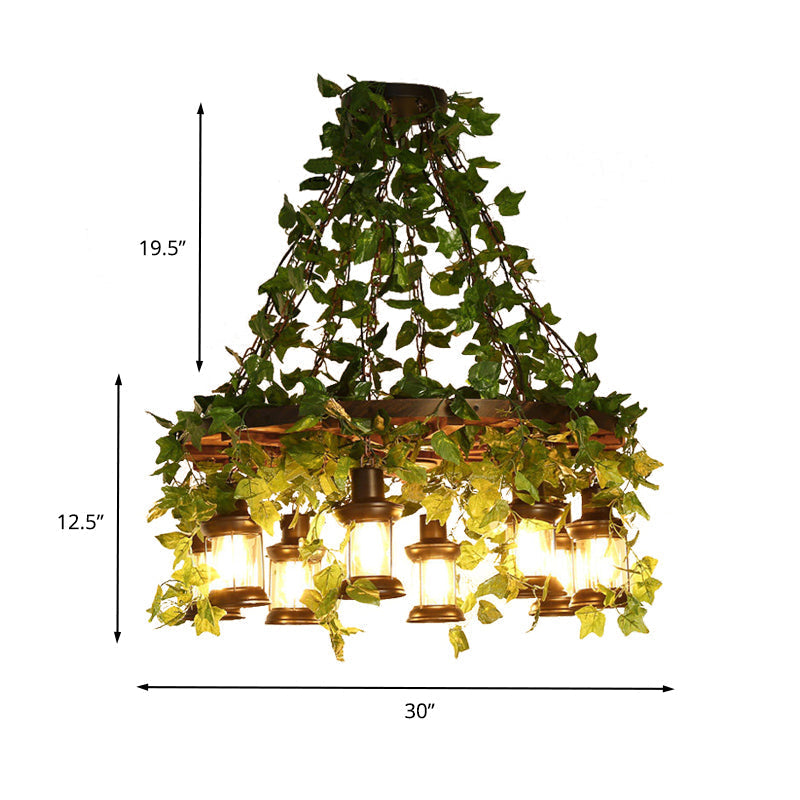 Industrial Wooden Chandelier With Led Plant Ceiling Light - Green Lantern Design 3/6/8 Heads Ideal