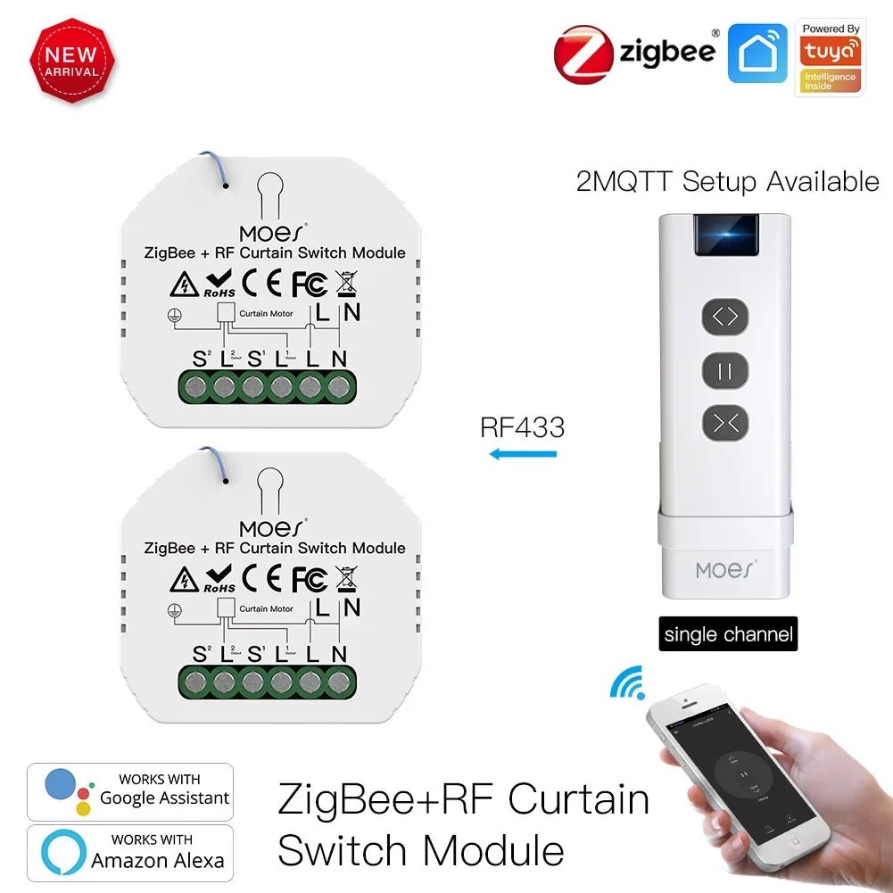 ZigBee DIY RF433 Smart Curtain Switch Module for Electric Motorized Roller Blinds Shutter Motor 2MQTT Available Smart Life/Tuya APP RF433 Remote Control,Compatible with Alexa Echo and Google Home